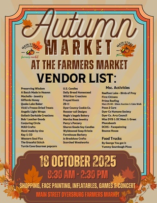 Main Street Dyersburg Farmers Market - Autumn Market** (opens at 8:30AM - 2:30pm)